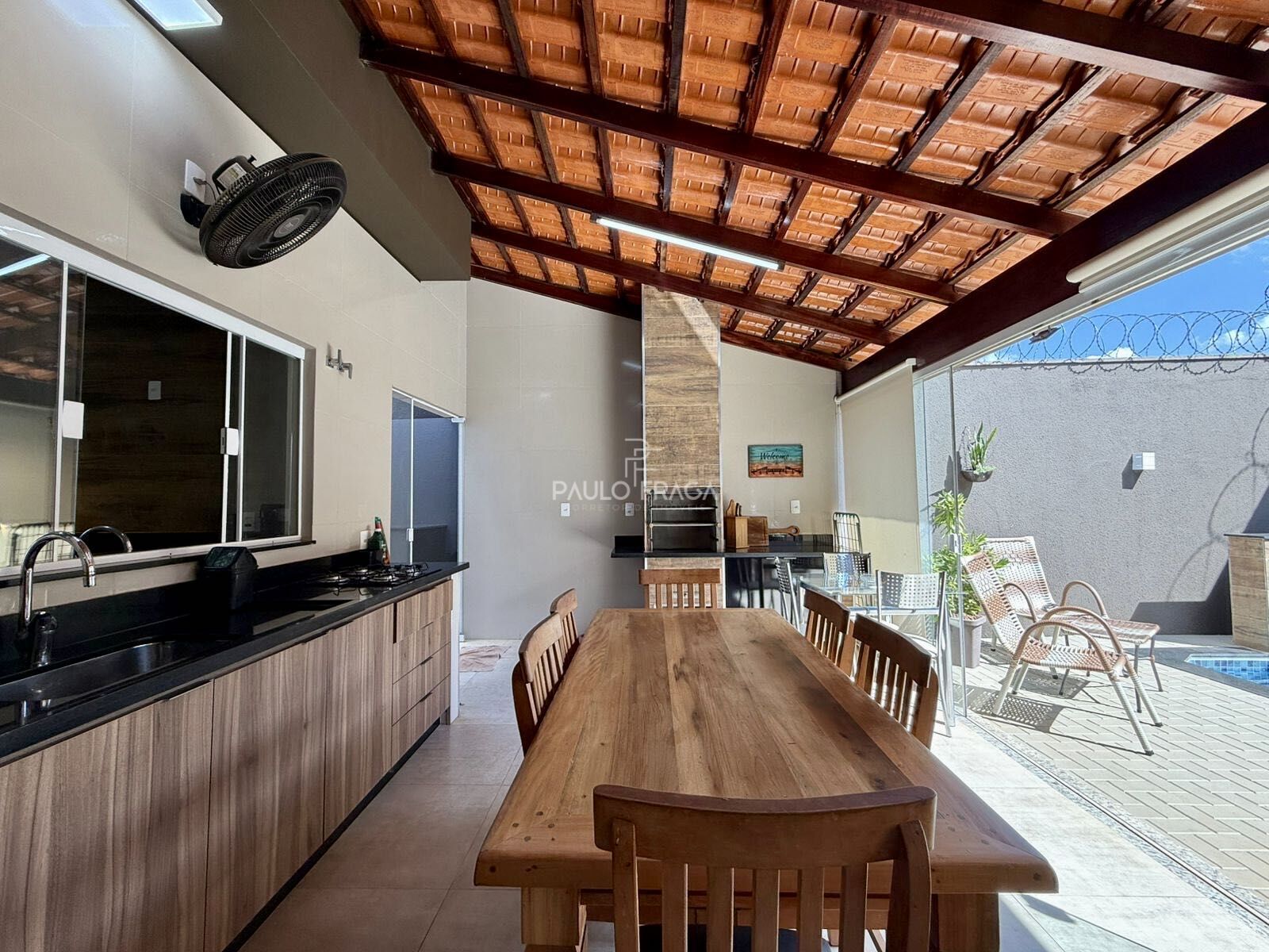 Armário embutidoChurrasqueiraCozinha americanaForro de gessoMuradoPiscinaPorcelanatosQuintal